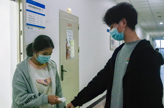 为严格落实疫情防控措施,本次比赛所有工作人员和参赛选手均要求全程佩戴口罩,采用“一测温、两亮码”的方式在工作人员的引导下进入比赛场地。选手们落座后以昂扬的姿态在电脑前跃跃欲试,信心十足。在主持人宣读比赛规则后,一声令下比赛正式开始。顷刻间,实验室里充满了指尖和键盘碰触发出的悦耳之音。